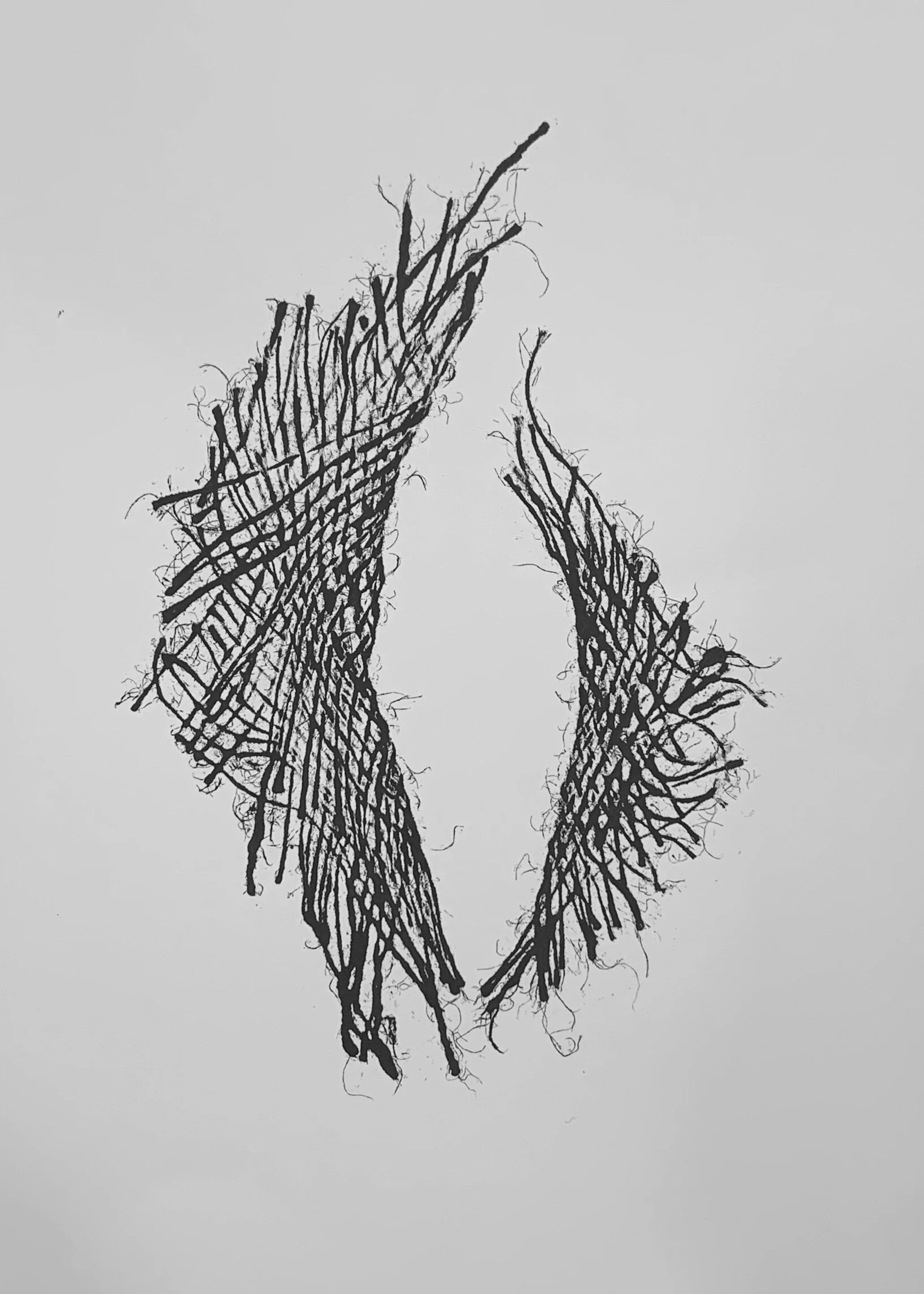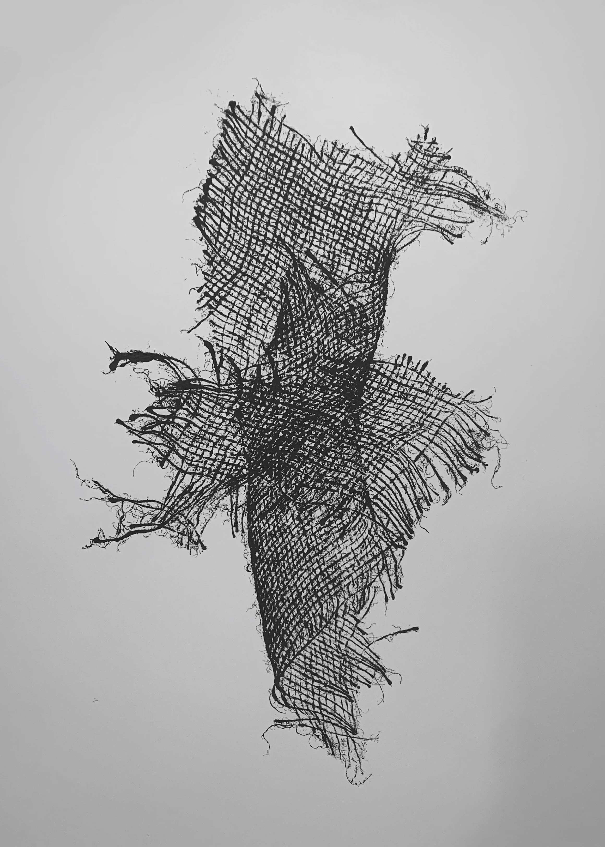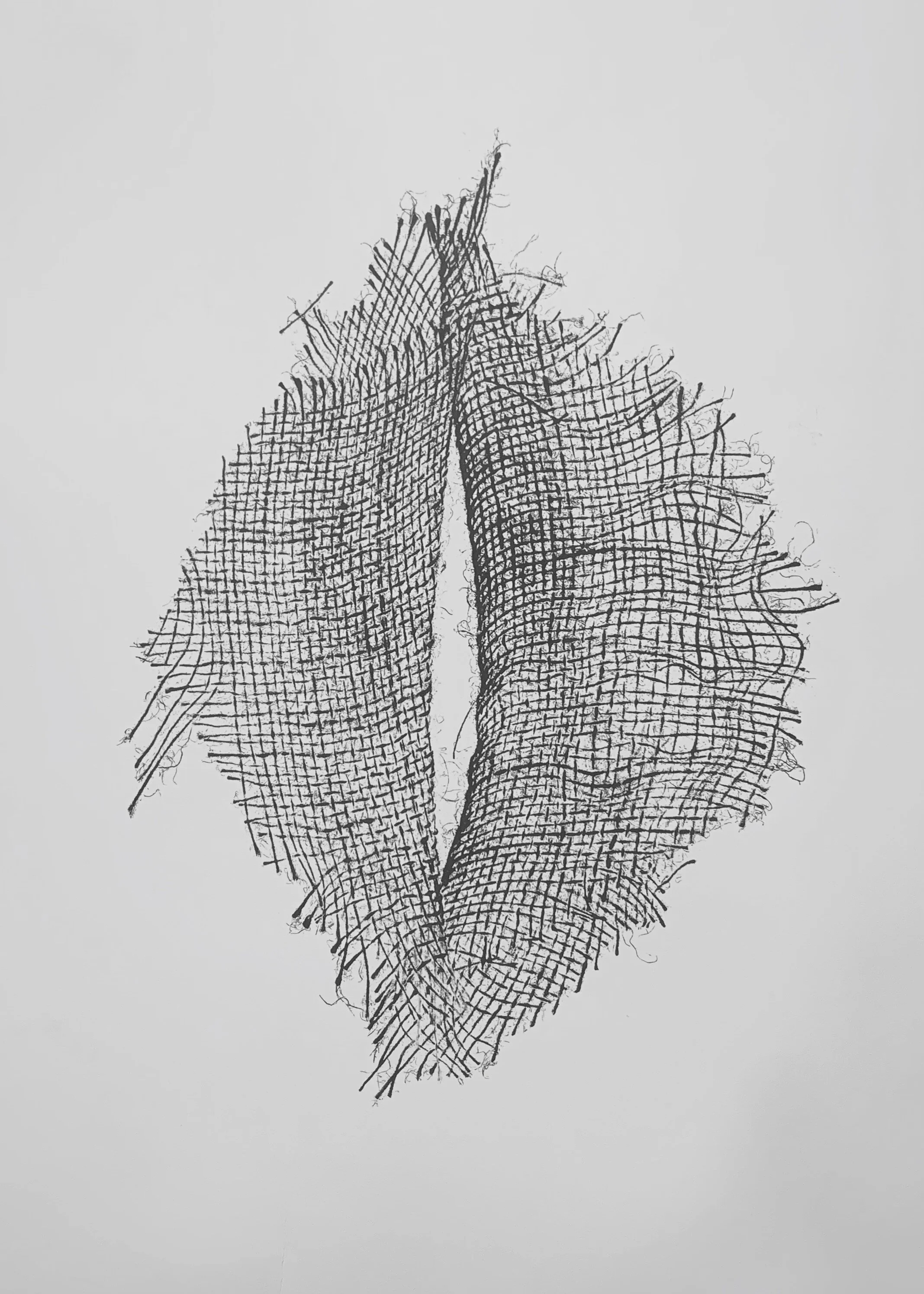 I am using burlap as a metaphor for the memories I have of my youth. The natural fibers remind me of the prairie and the woven blankets and baskets of my tribe. By manipulating the natural material and making an impression, I remove the object and create my own visual narrative. The texture and movement is poetic and allows me to refine the roughness and reminisce with a newly found nostalgia.